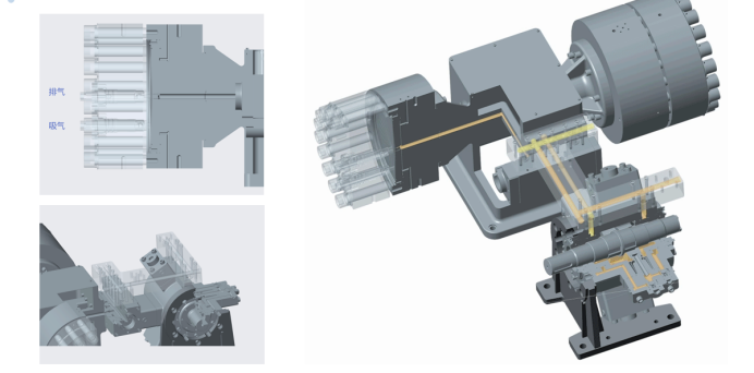 结构原理:采用自研高压柱塞泵提供压力源,通过自研高频换向阀实现液压换向,驱使膜片进行气体压缩。